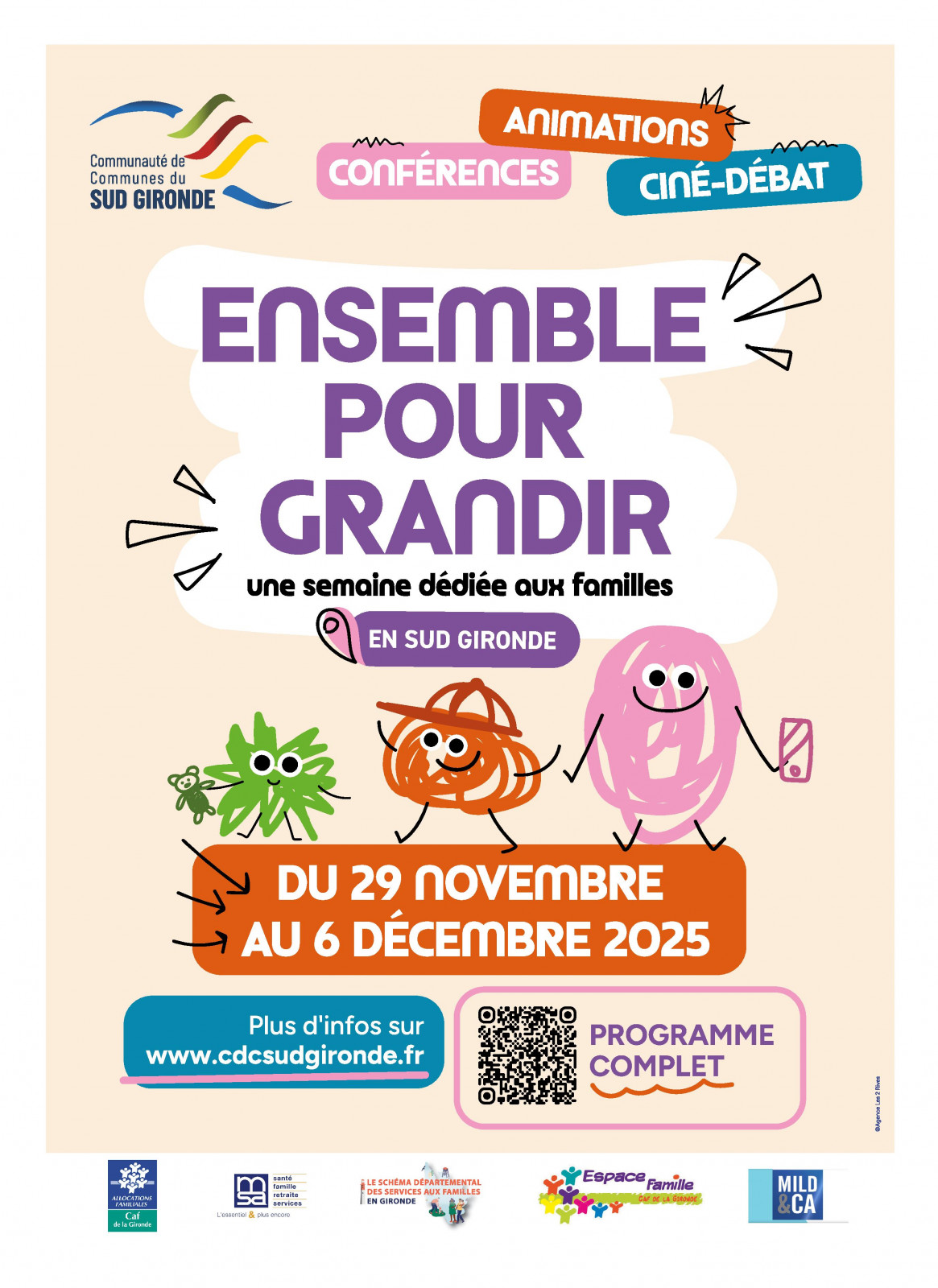 La Communauté de Communes du Sud Gironde organise la semaine “Ensemble pour Grandir” du 29 novembre au 6 décembre 2025, un événement entièrement dédié aux familles, aux enfants et aux parents du territoire.